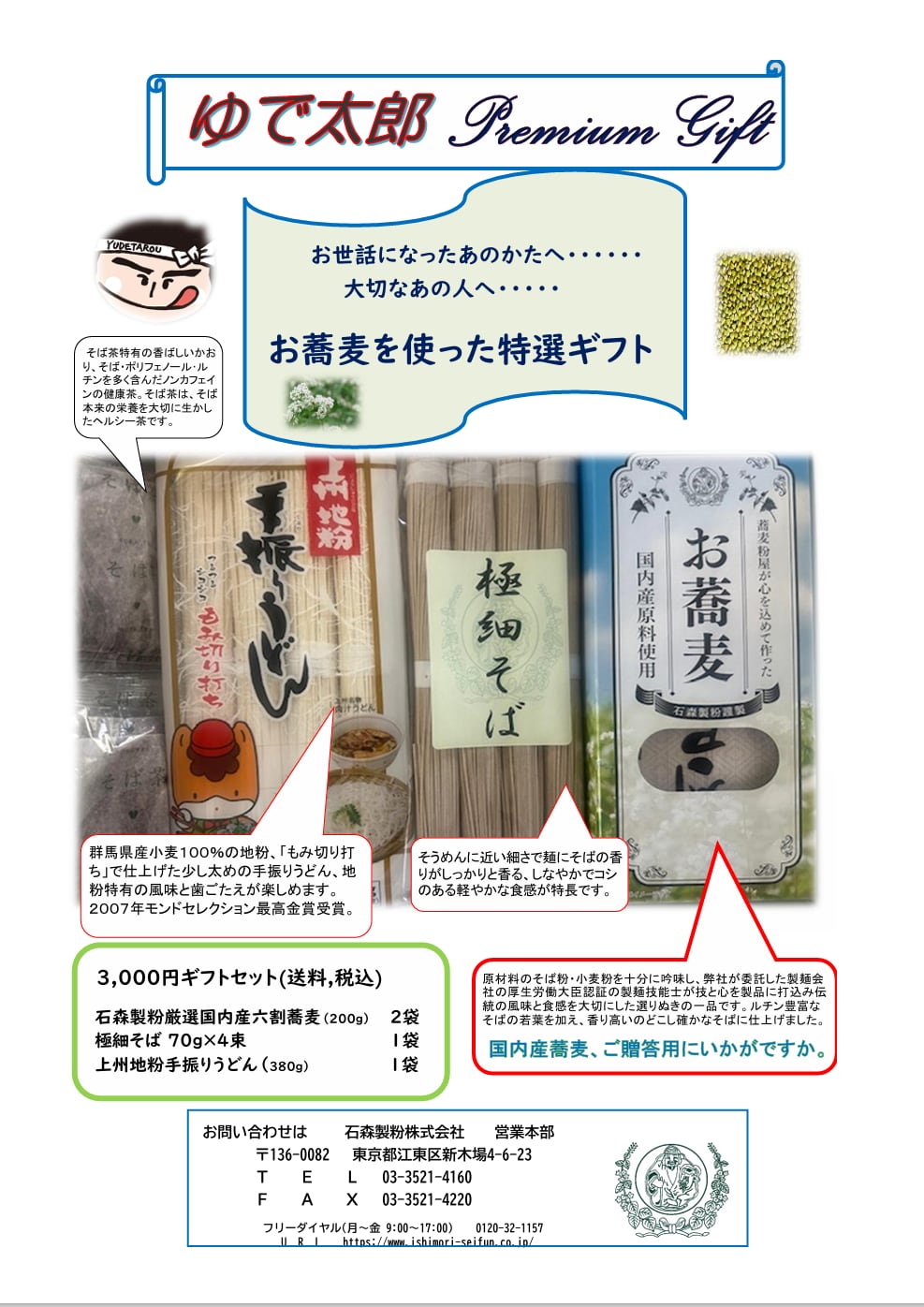 ゆで太郎のそばを製粉してくださっている石森製粉様のお歳暮セットです。